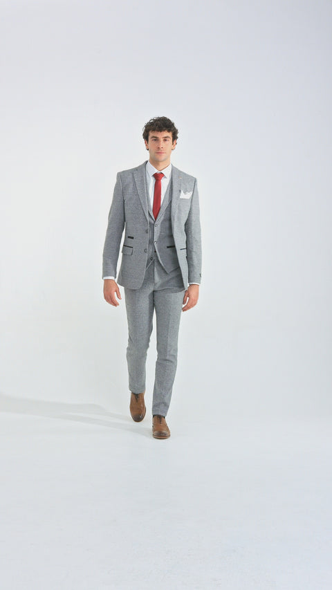 Terno masculino de tweed espinha de peixe cinza claro de 3 peças - STZ11